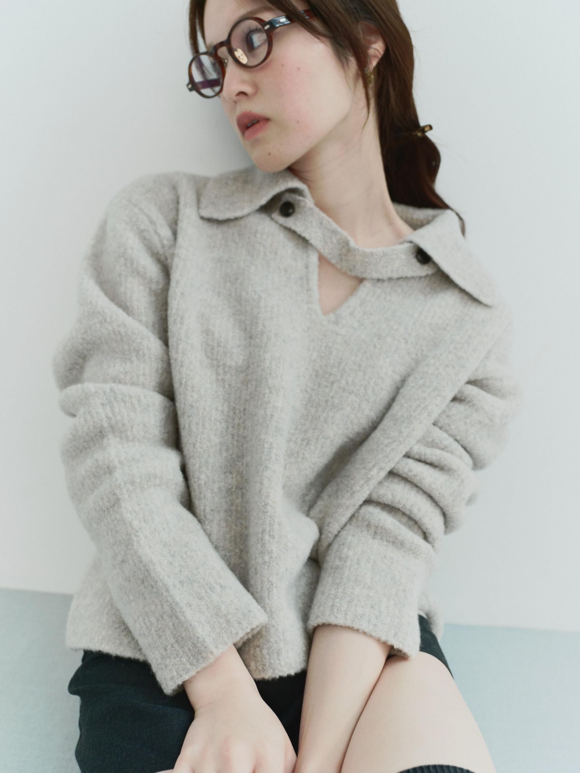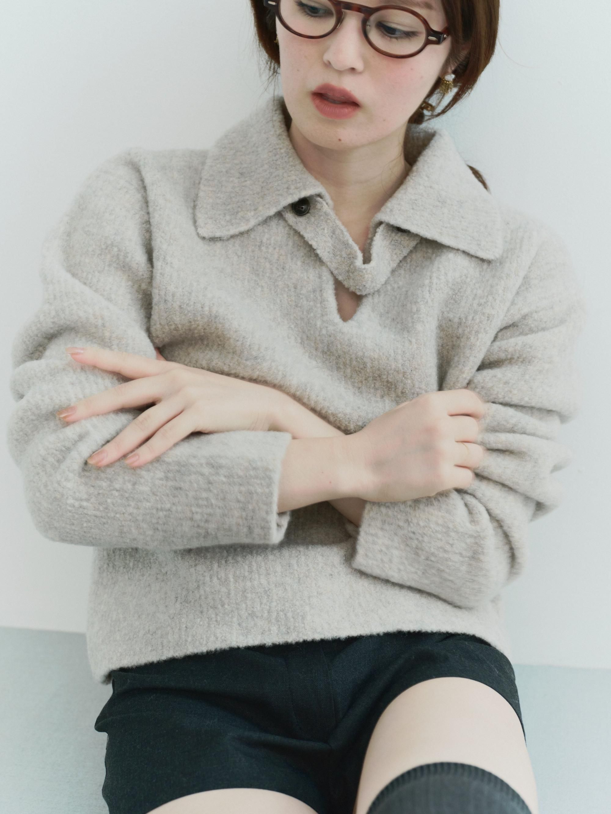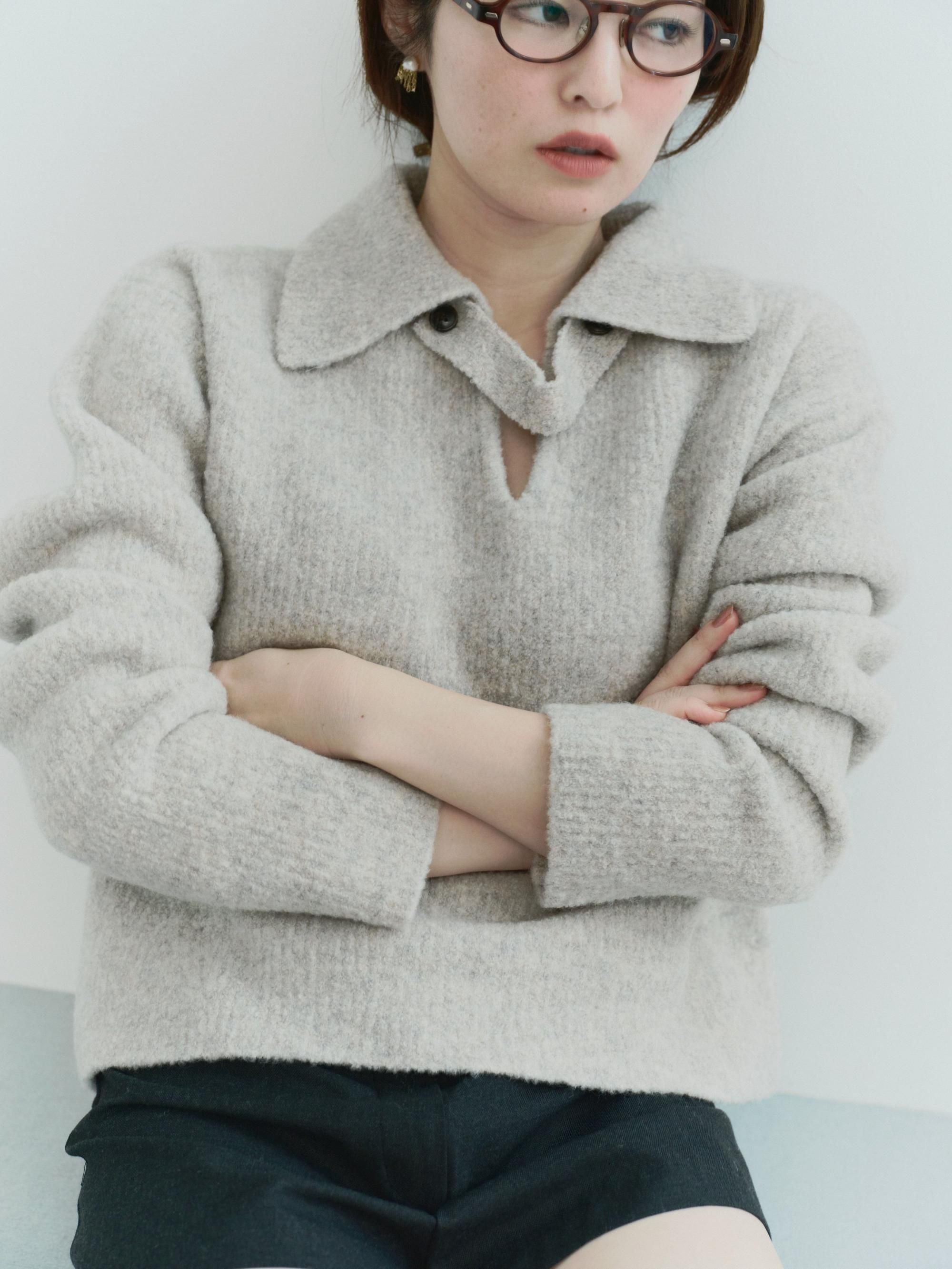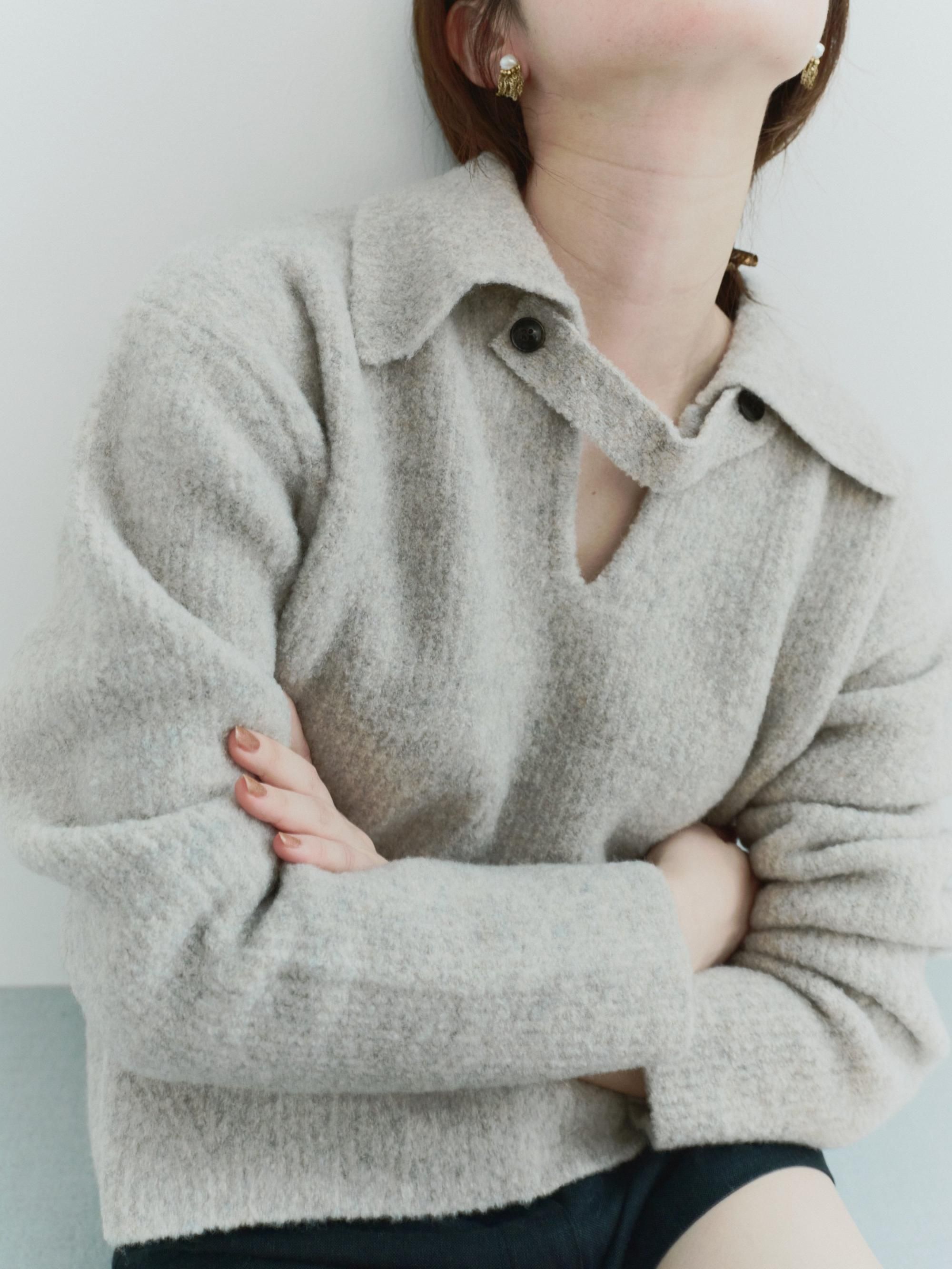 ブークレの糸を使って編み上げたポロ衿ニット
