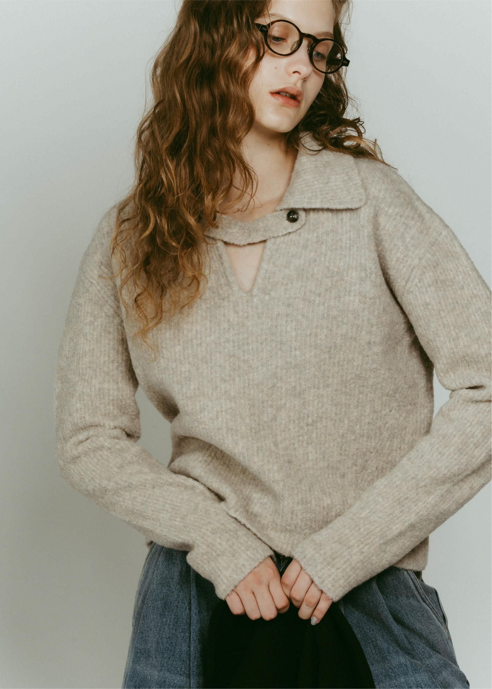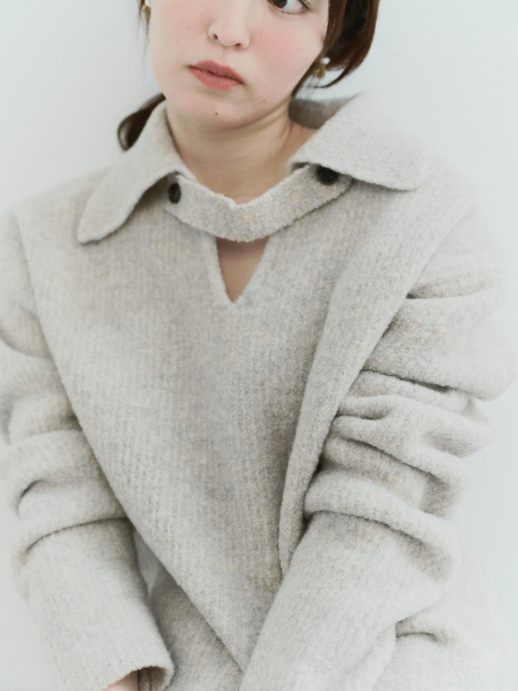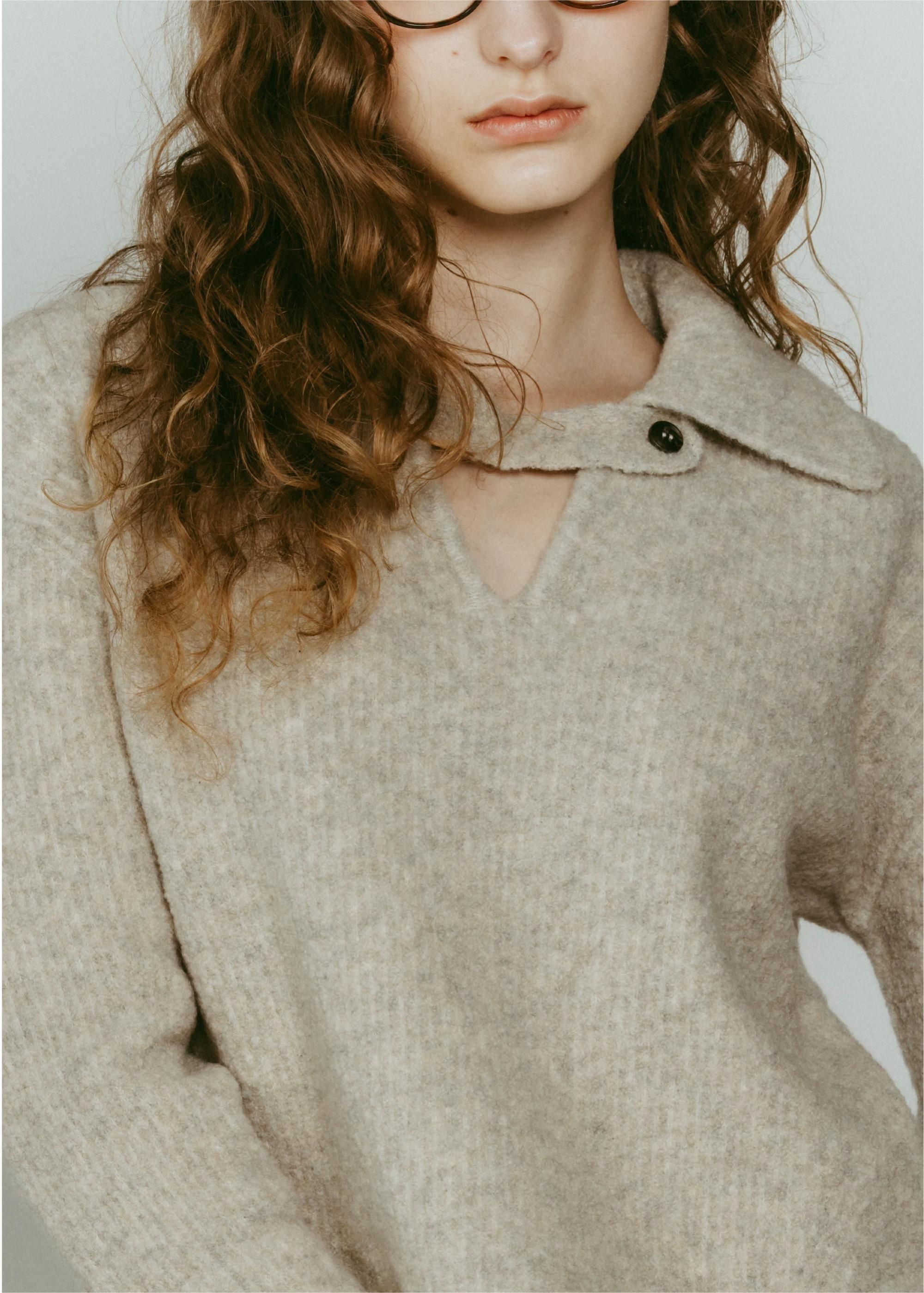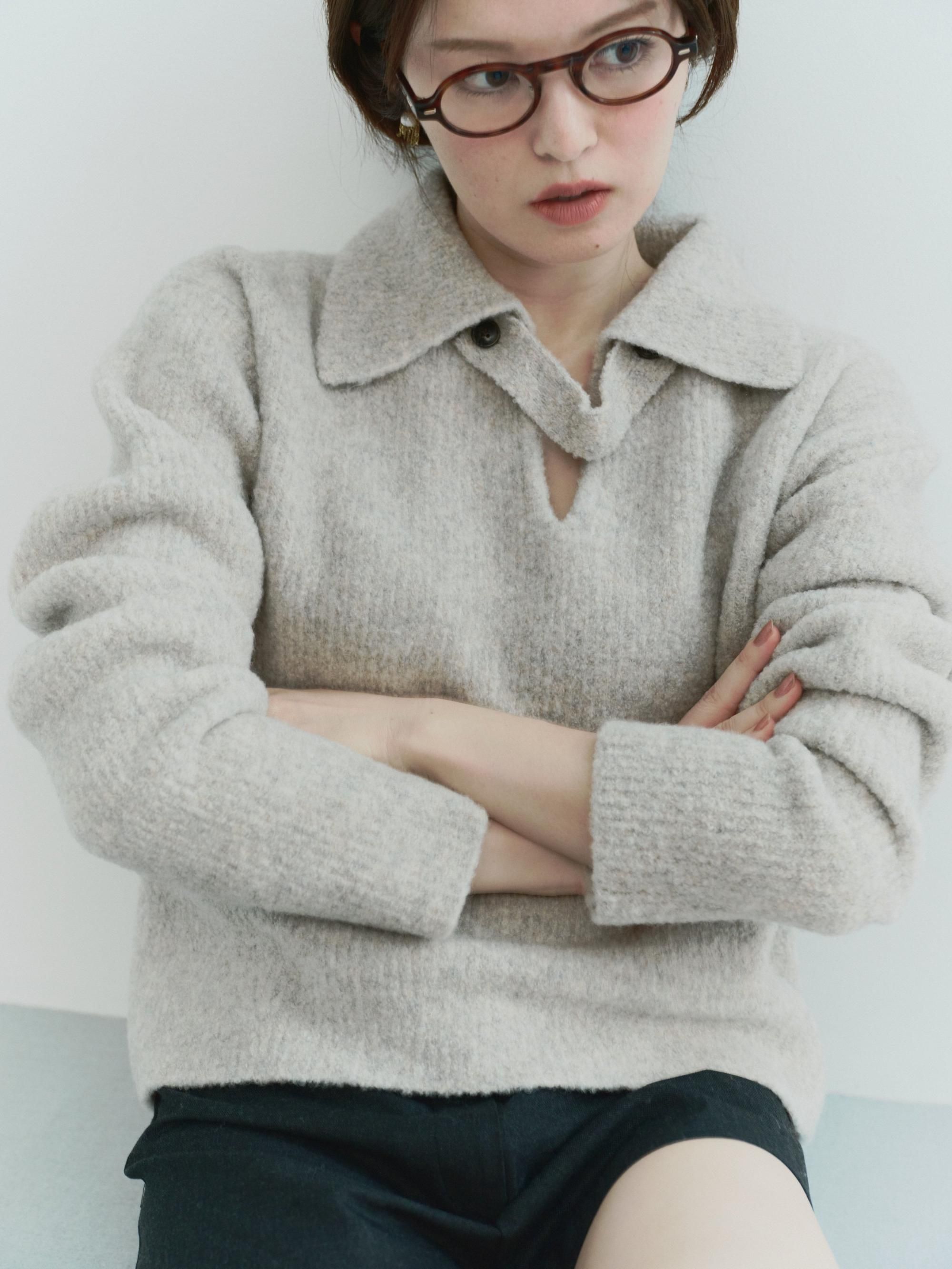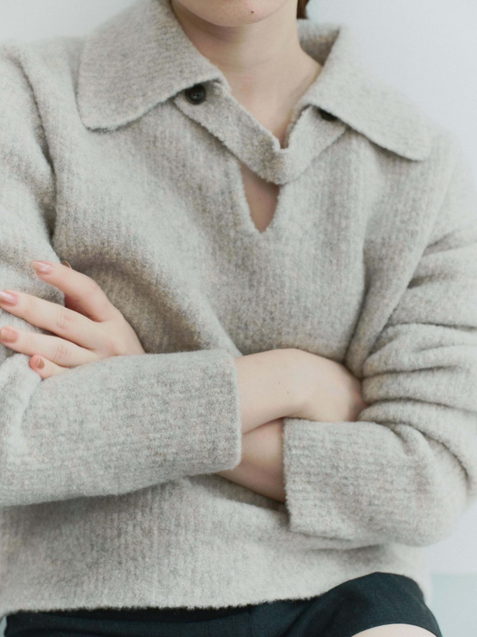 ブークレの糸を使って編み上げたポロ衿ニット
