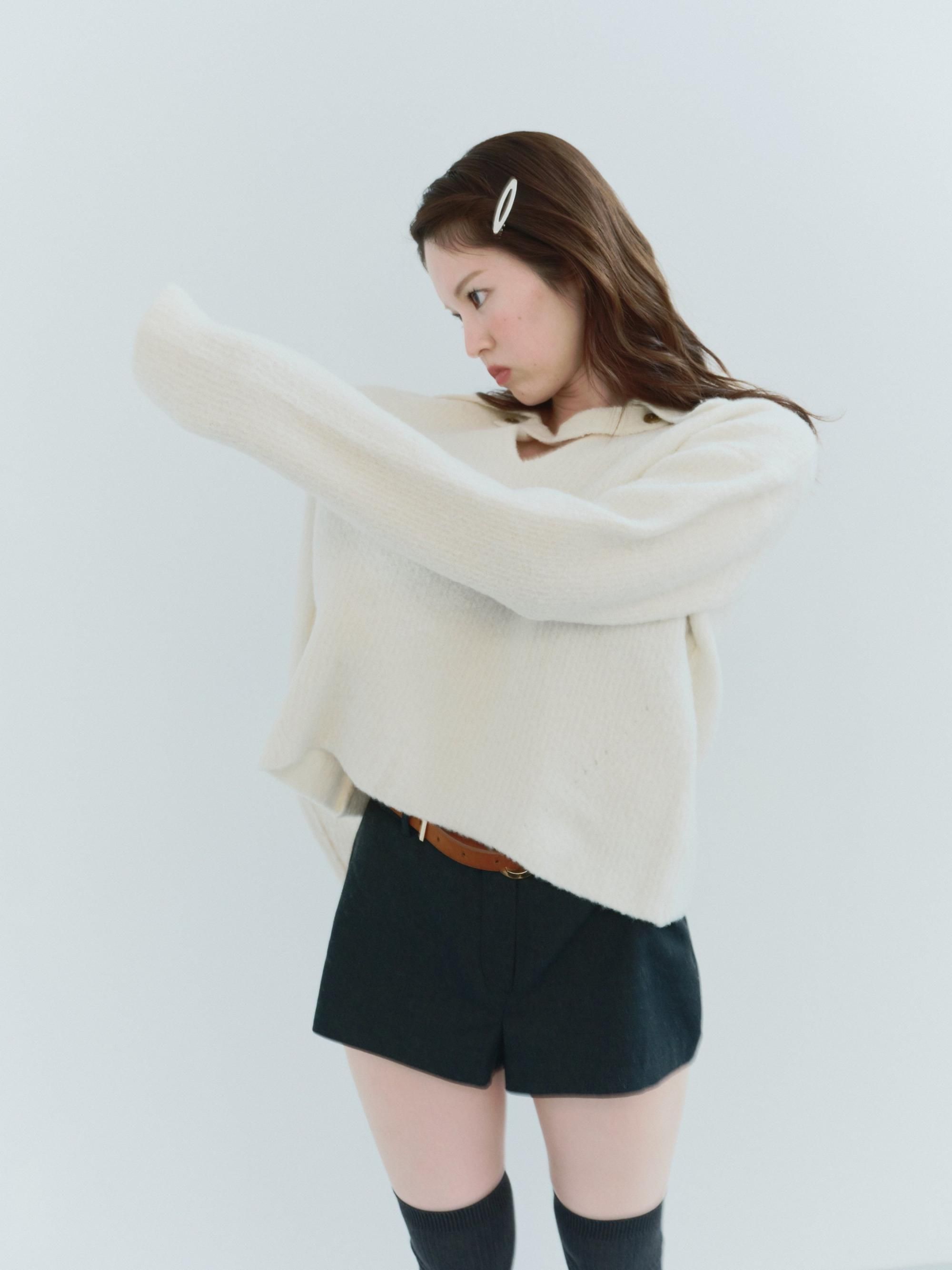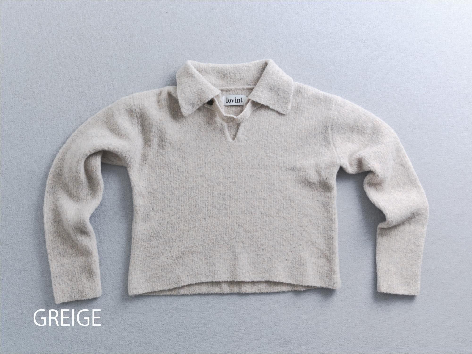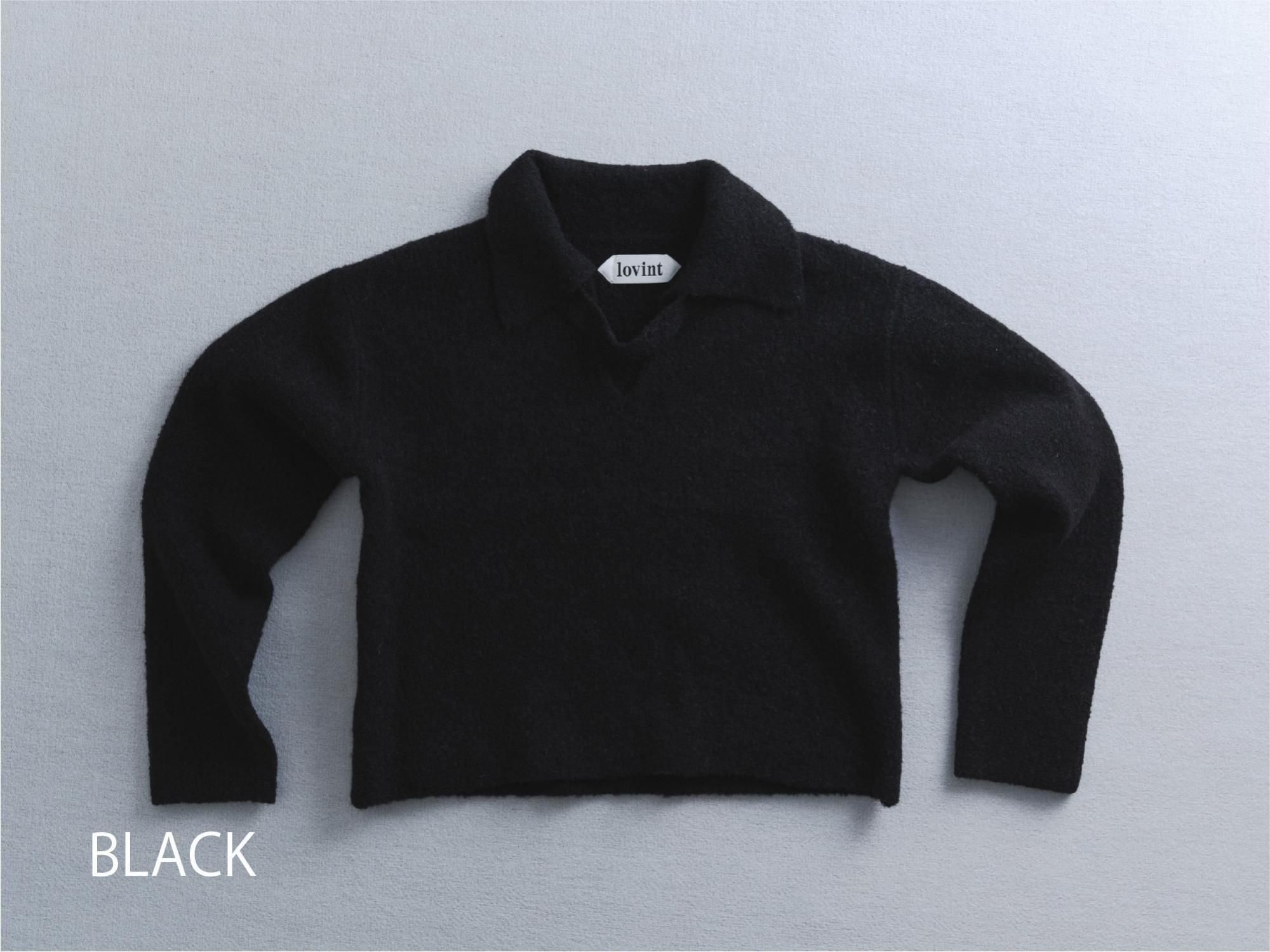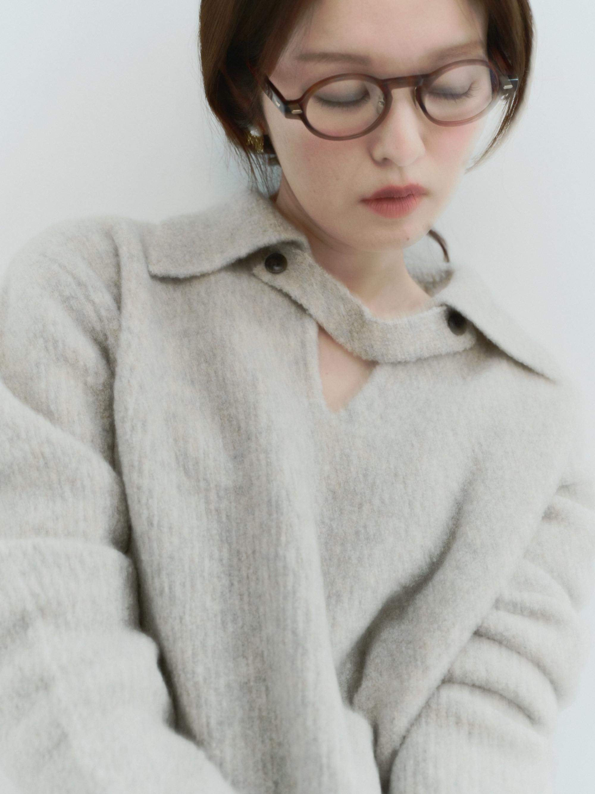 ブークレの糸を使って編み上げたポロ衿ニット
