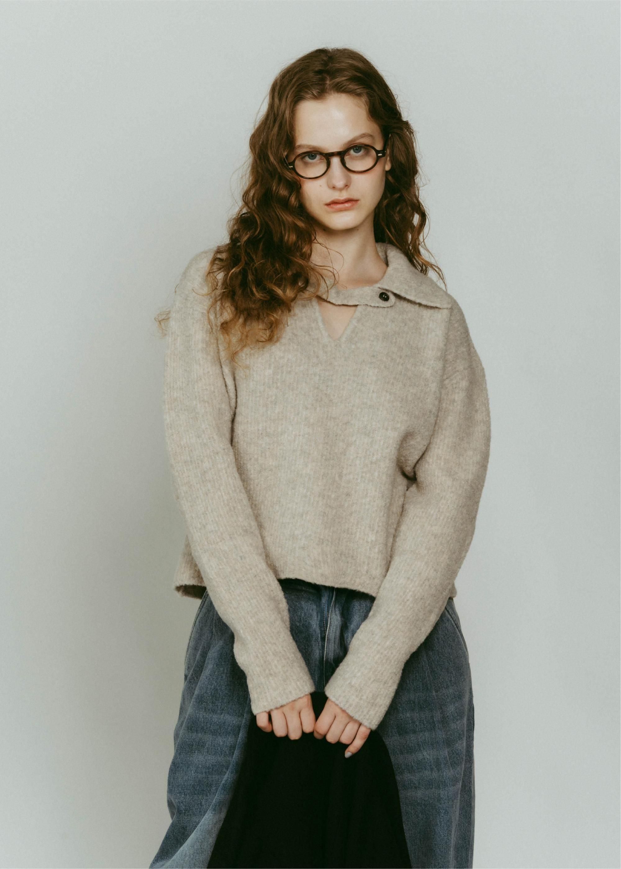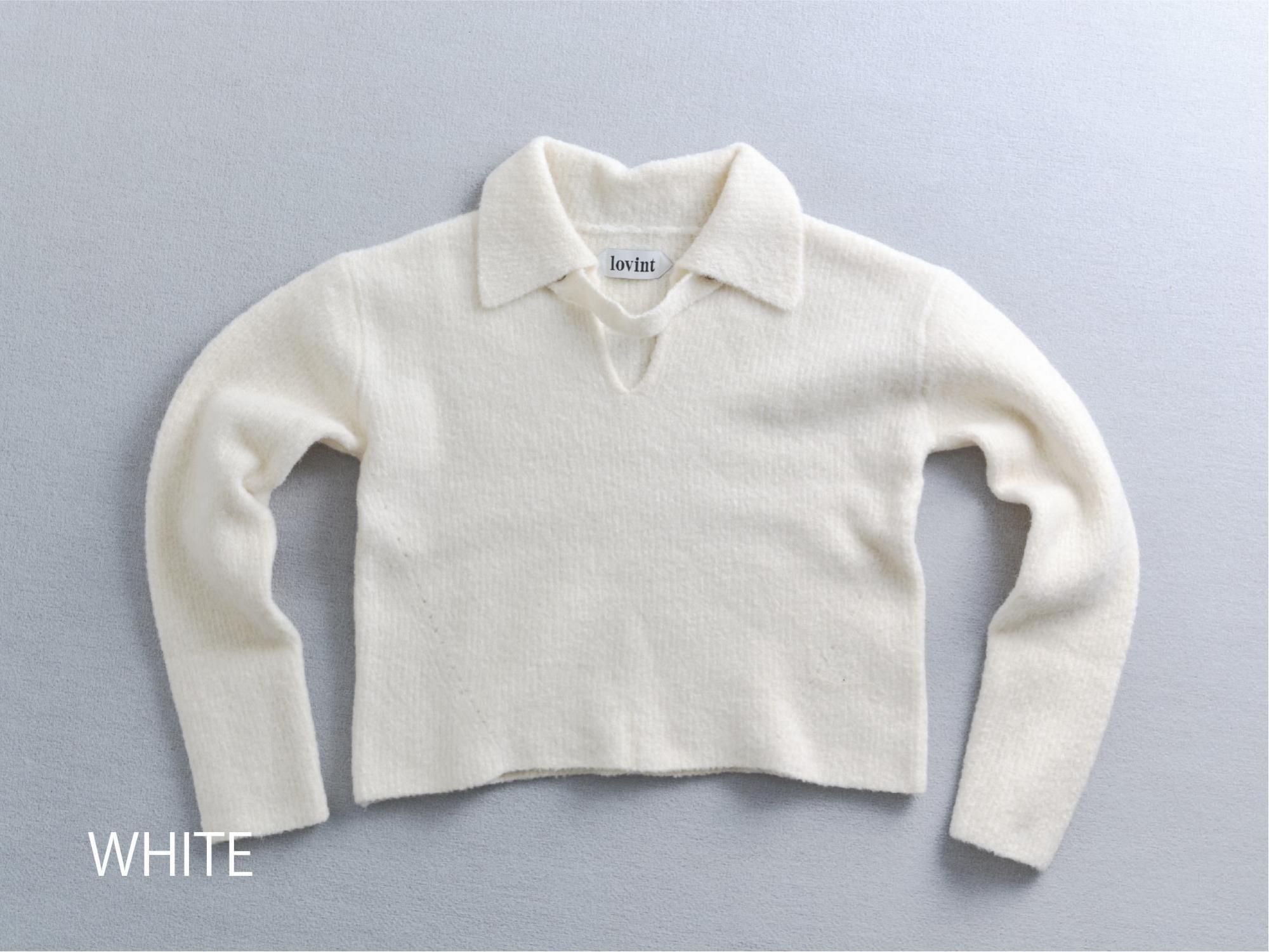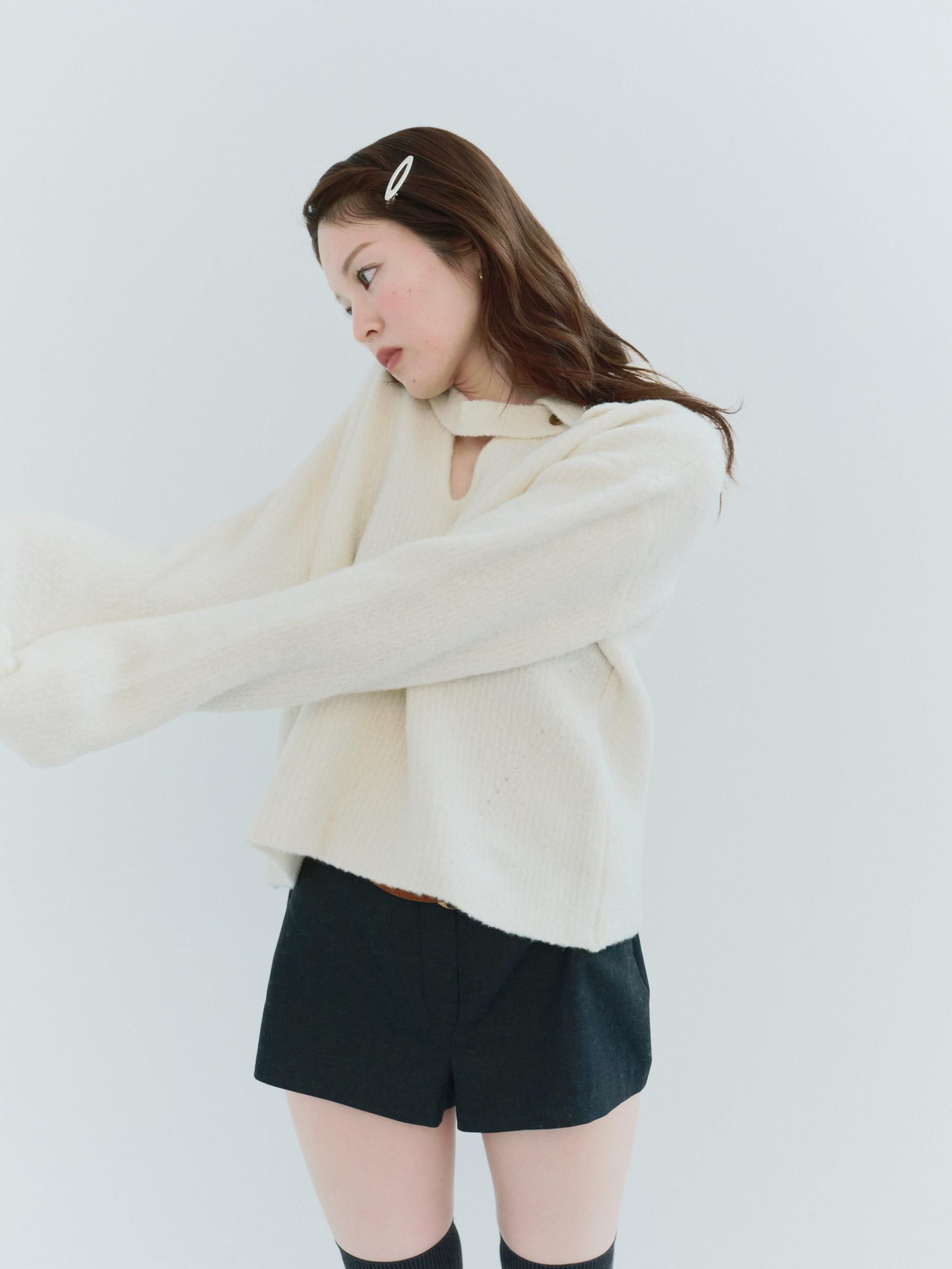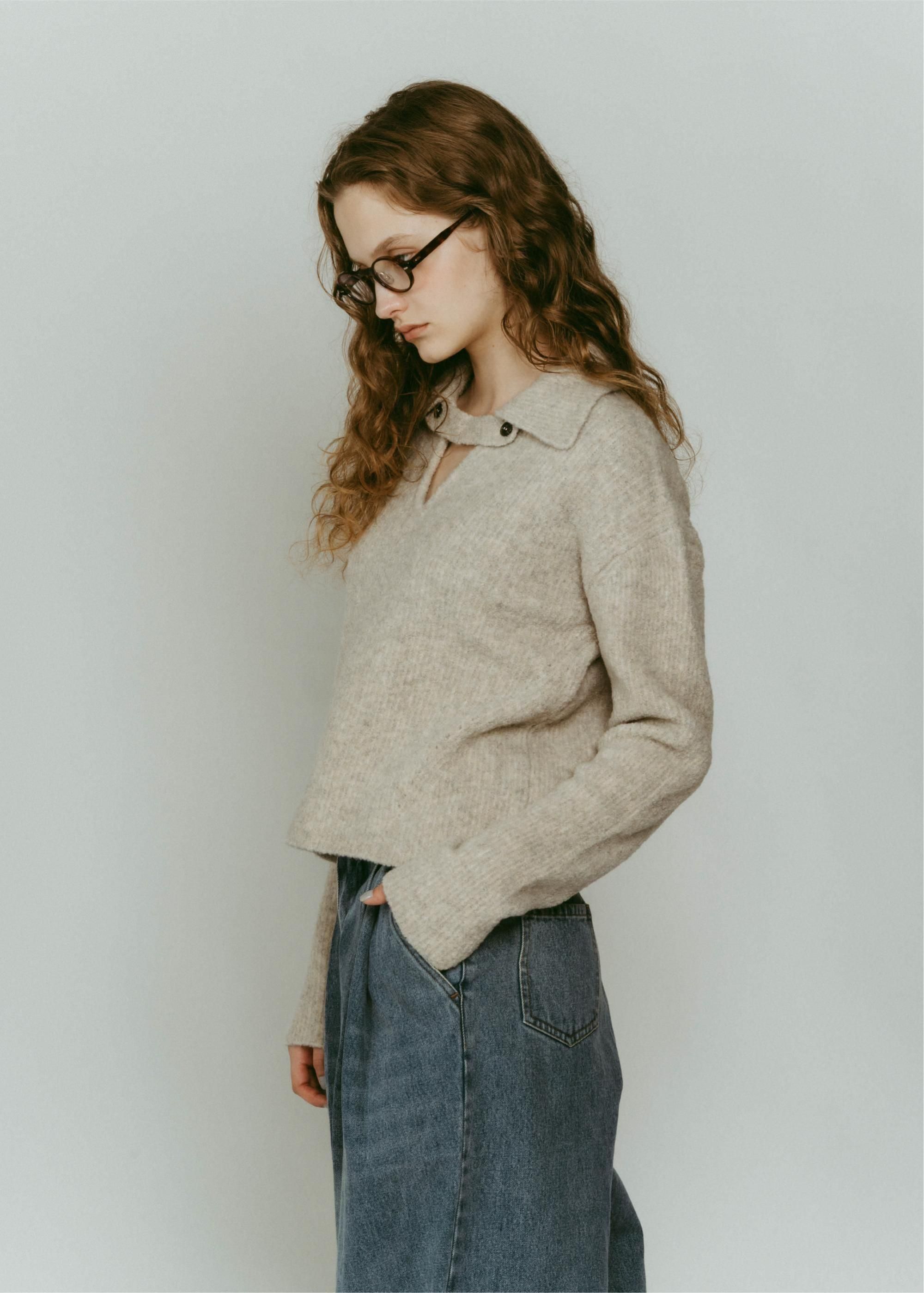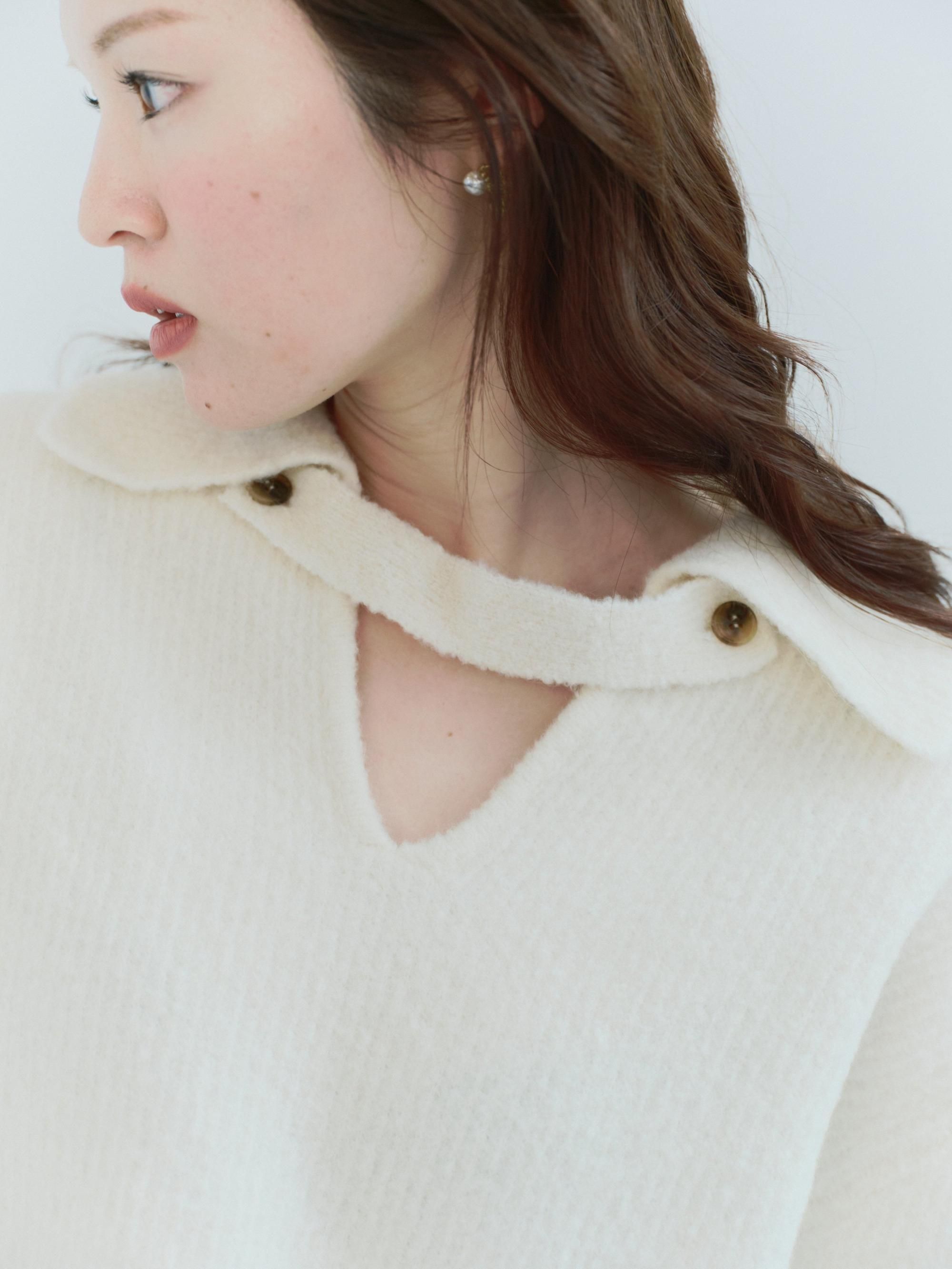 ブークレの糸を使って編み上げたポロ衿ニット