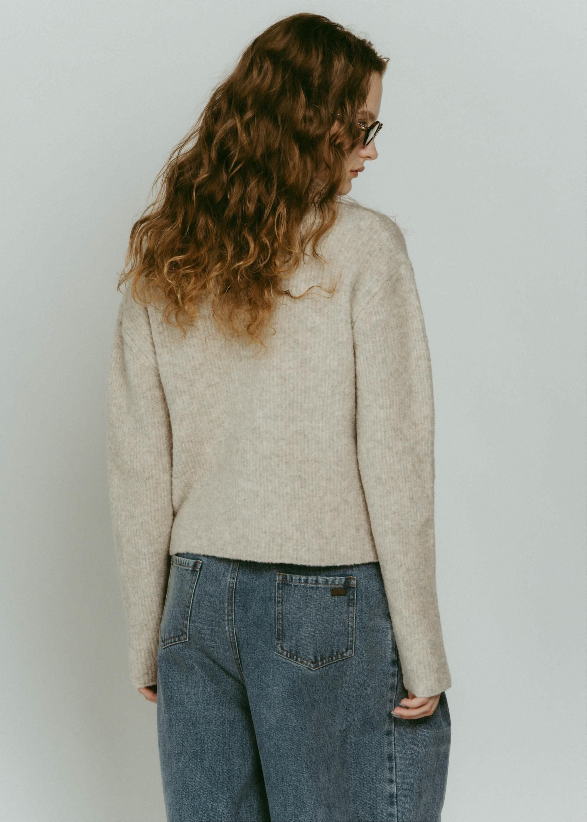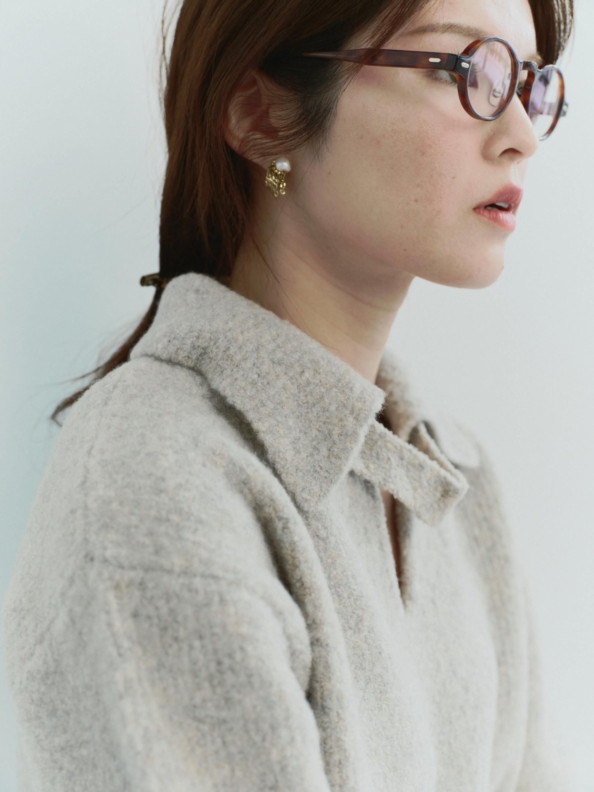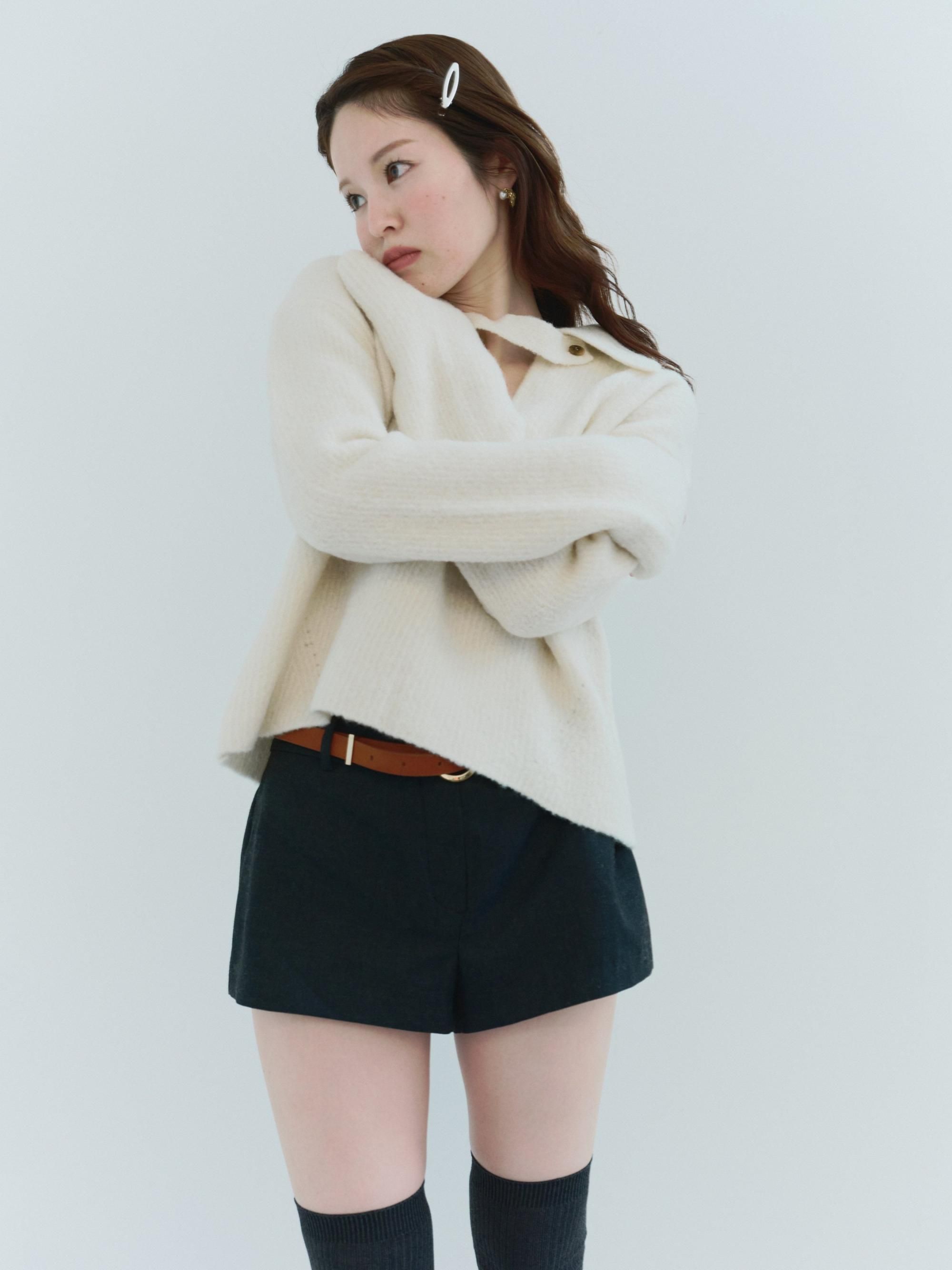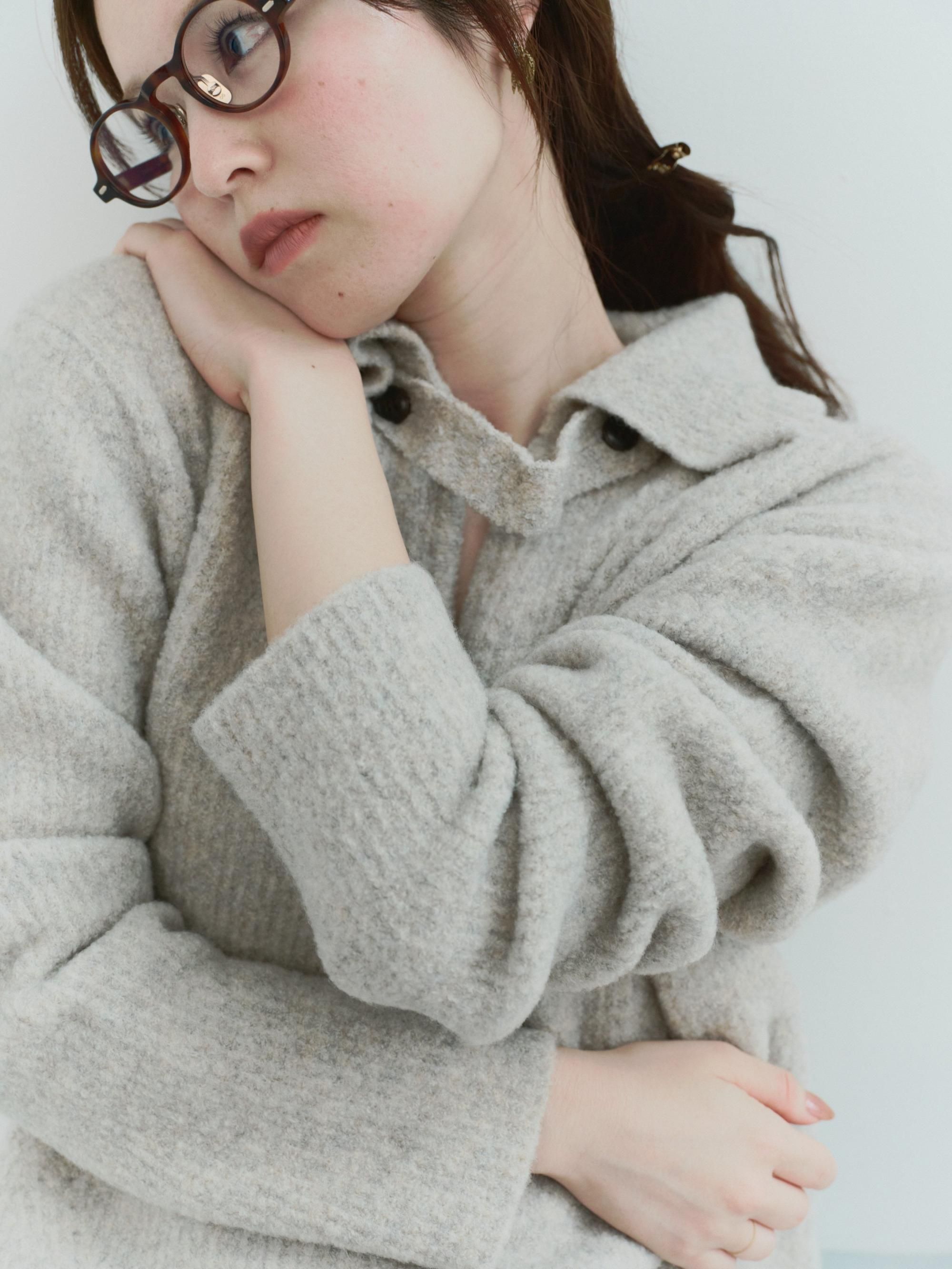 ブークレの糸を使って編み上げたポロ衿ニット