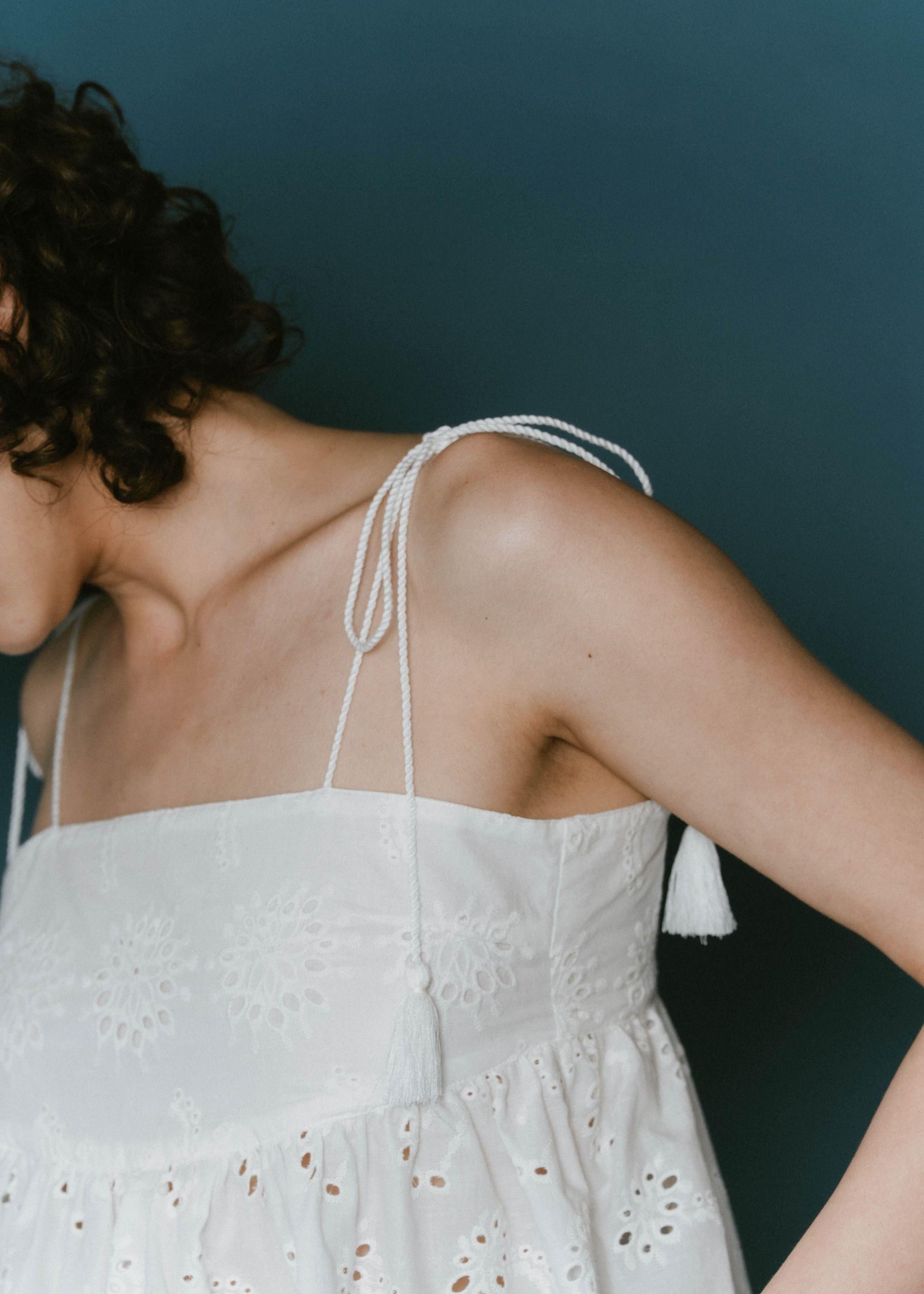 クロスしたり、後ろで括ったり、ホルターネックにしたり。